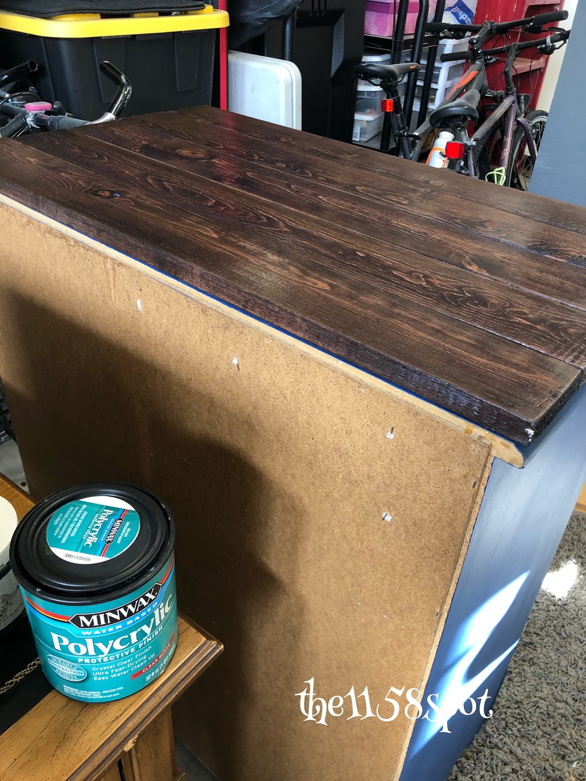 After a few days, I lightly sanded the planks and applied 3 coats of miniwax polycrylic to seal and protect the wood.