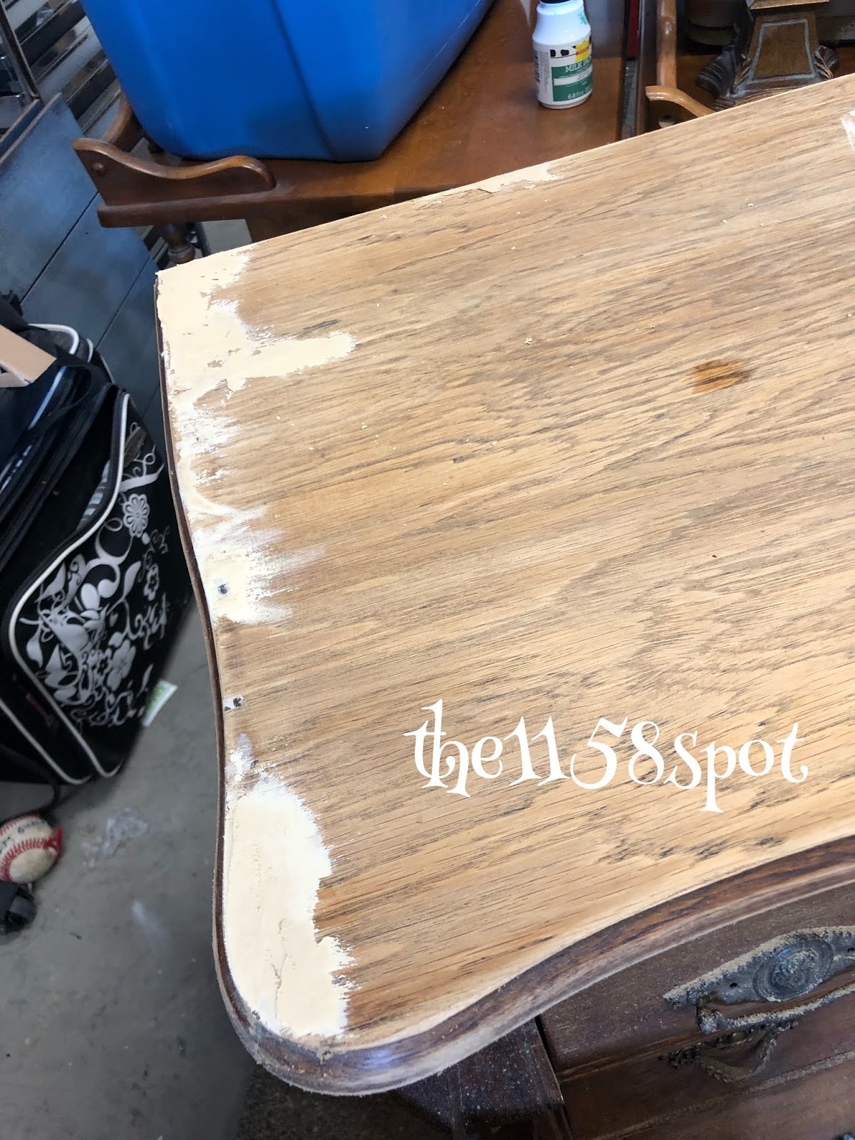 It was a beautiful piece but was in horrible shape. The top was ROUGH!! So much so, that I got a splinter just running my hand across the top! Ouch!